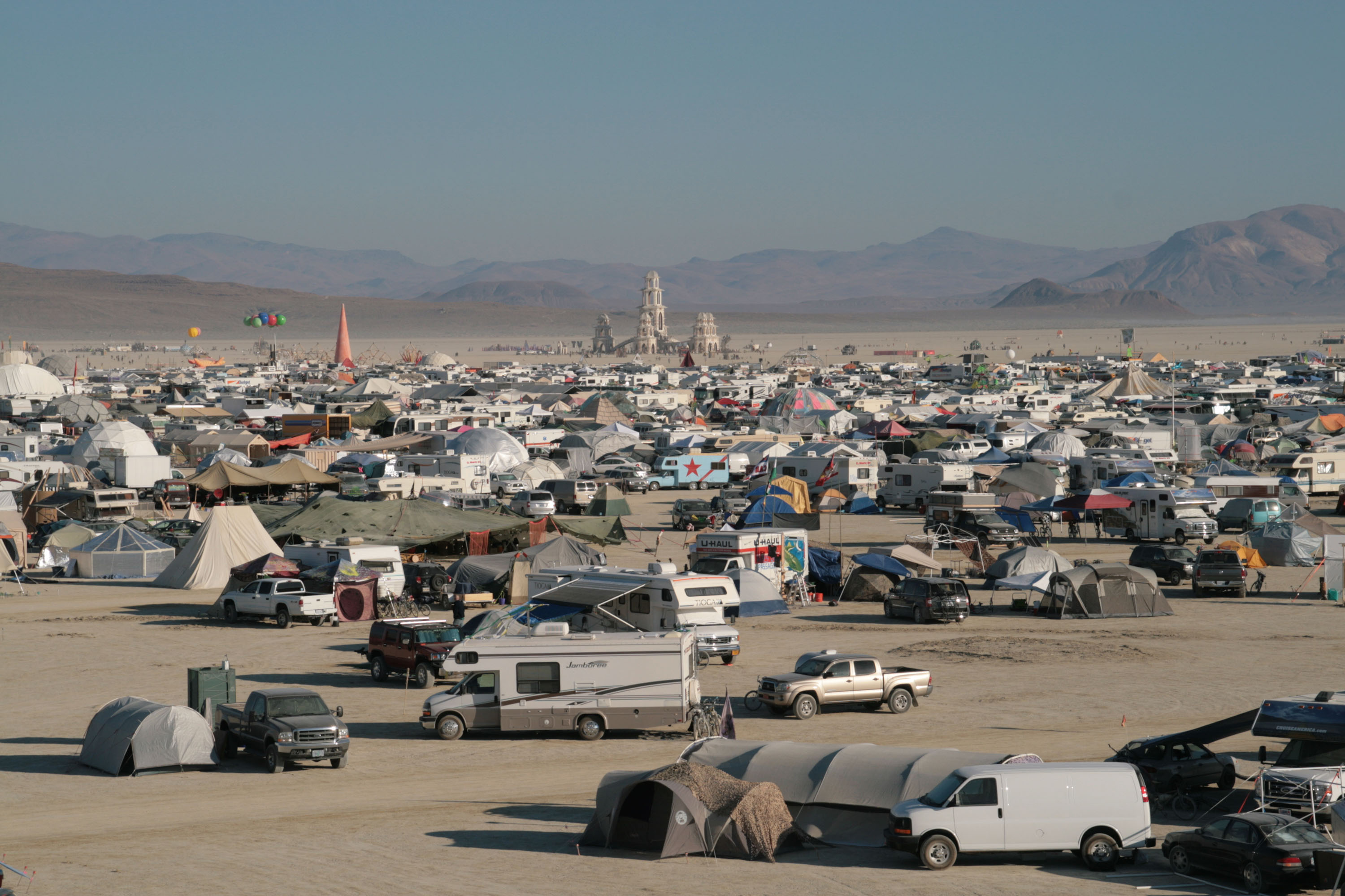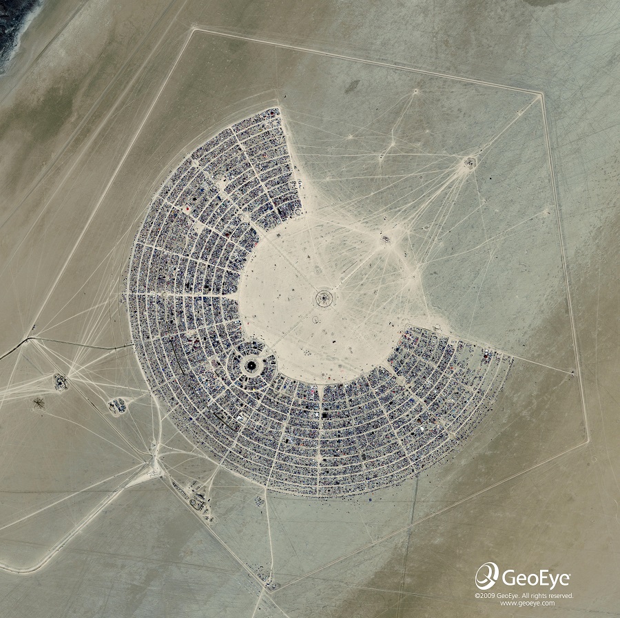 现在我们所参加和看到的Burning Man实际上是从1997年开始的,管理组织的成立把Burning Man变成了一个固定的年度活动,有了更多的宣传,投入,规划以及管理,与州政府的协议也划定了活动的疆域和各种基本的规范。沙漠中从此凭空多出一个Black Rock City,这个城市在一年中的大部分时期并不存在也没有痕迹,可是每年夏秋之交的一周里,这是整个地区人口最多的城市,比如在最高峰的时期,同时有6万人生活在这里。