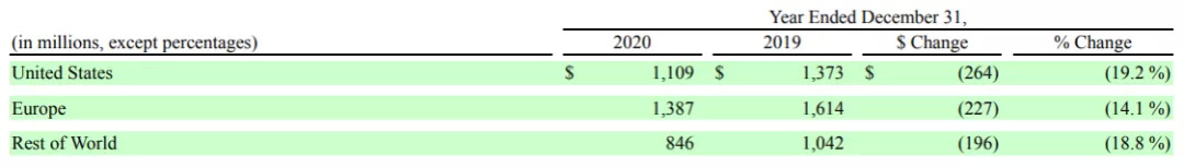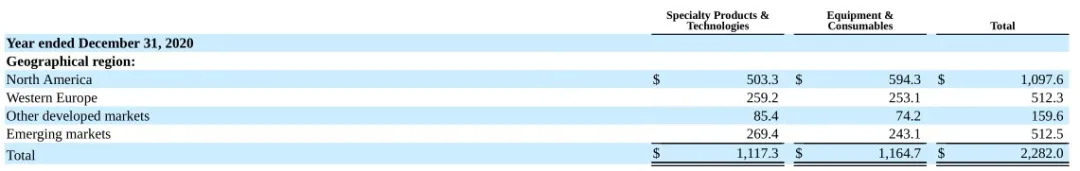 Envista 2020年区域营收数据