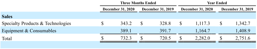 Envista 2020年营收数据