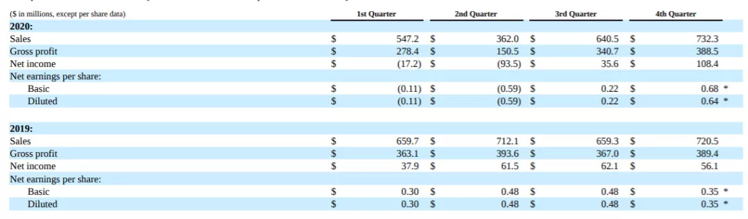 Envista 2020年季度营收数据