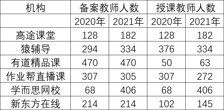 在2019年的年度报告中,高途课堂说他们有232名持证的教师,并在官网上列出了217名教师,但教育部要求公示师资信息时,高途课堂公布全部的教师数量仅为128名。