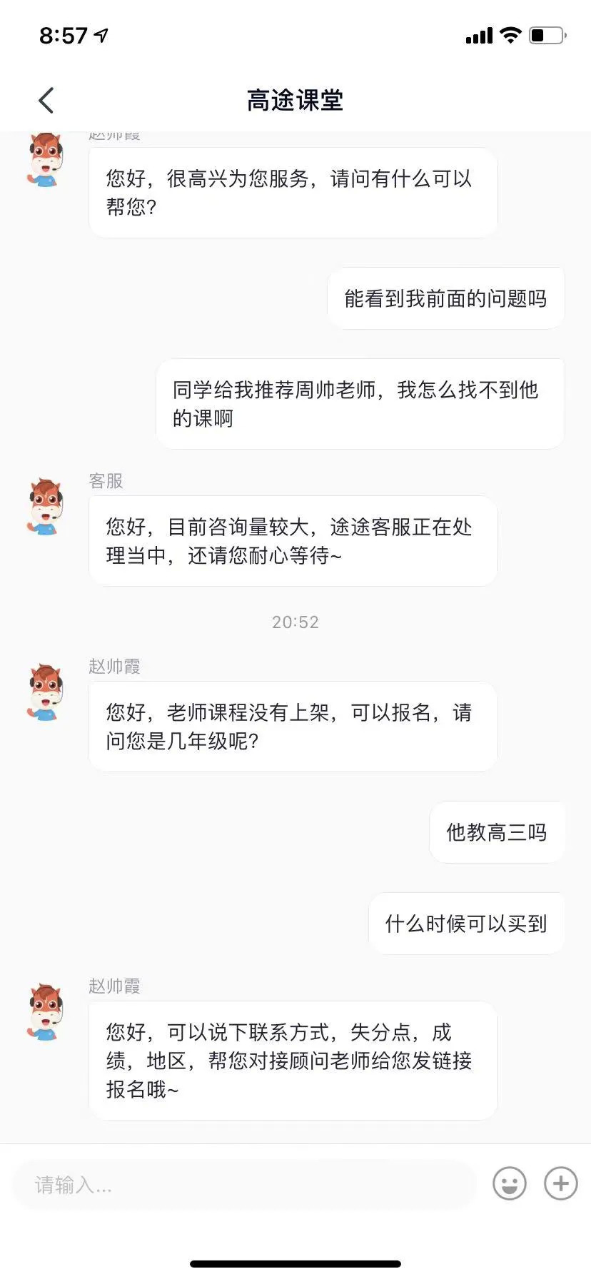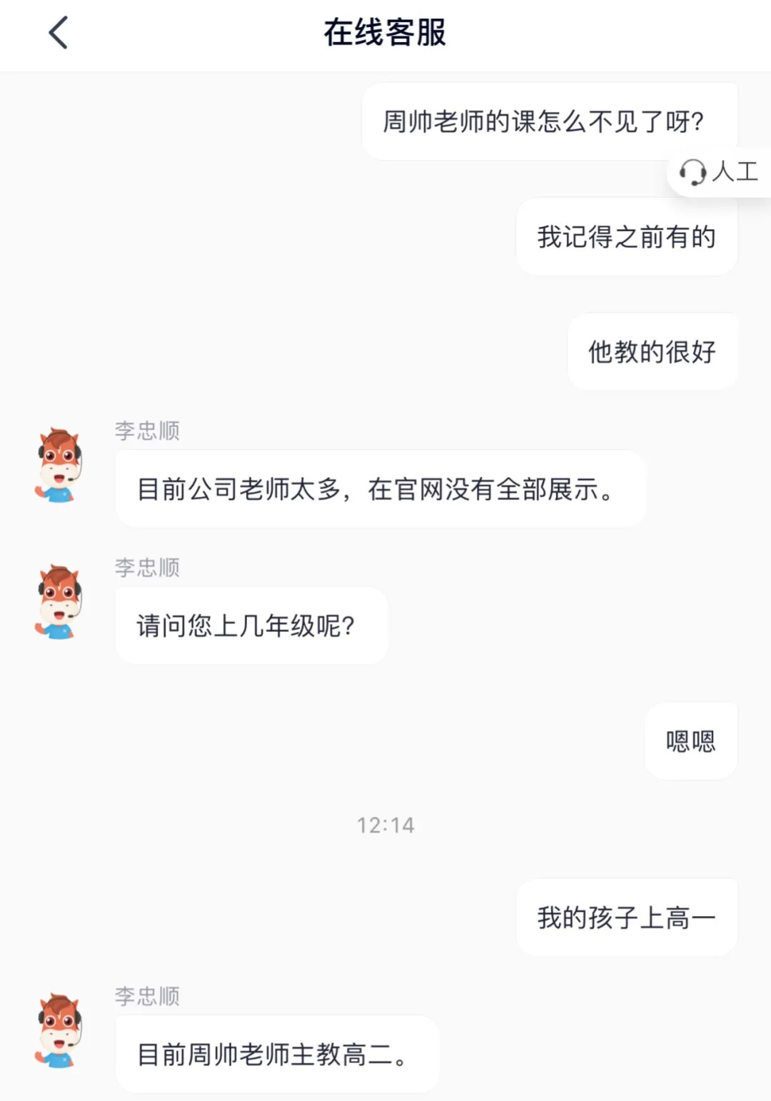 智商税研究中心向高途课堂APP的客服进行了咨询求证,客服说目前周帅老师主教高二,搜索不到其课程是因为公司老师太多,目前在官网没有全部展示。