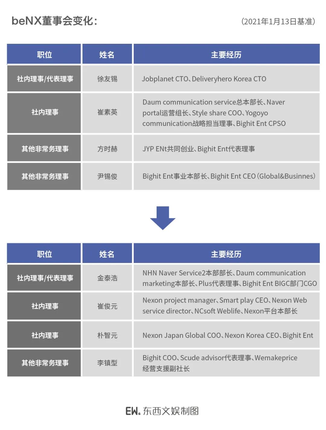 在Naver对beNX进行股权投资后(49%),beNX董事会进行了重组,更换CEO,引进了平台专家,将来Naver人员有望加入董事会。