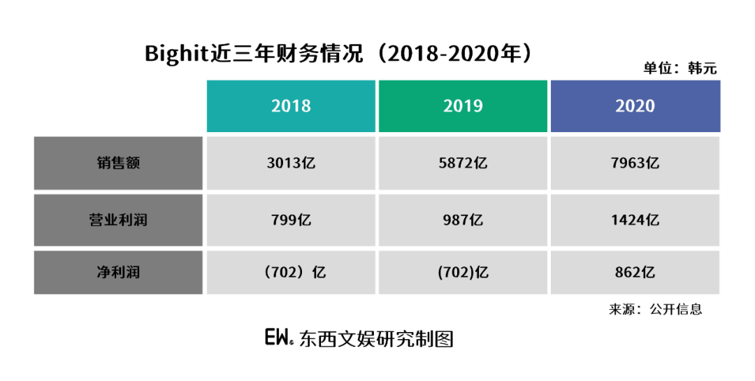 Bighit于2月23日公布的2020年业绩显示,销售额、营业利润、净利润创公司新高,第四季度营业利润为525亿韩元,销售额为3123亿韩元,分别同比增长了122.3%和116.9%。
