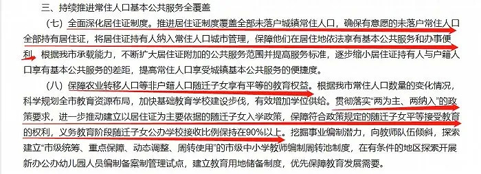 2、全面深化居住证制度,保障农业转移人口等非户籍人口随迁子女享有平等的教育权益,切实保障农业转移人口劳动权益等。
