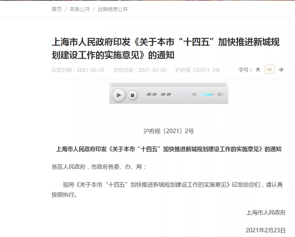 3月2日,上海市人民政府印发《关于本市“十四五”加快推进新城规划建设工作的实施意见》的通知。其中,重要消息释放:上海的嘉定、青浦、松江、奉贤、南汇(临港)等5个新城,获得了跟中心城区差异化的住房、土地政策,并从即日起放宽了落户条件。