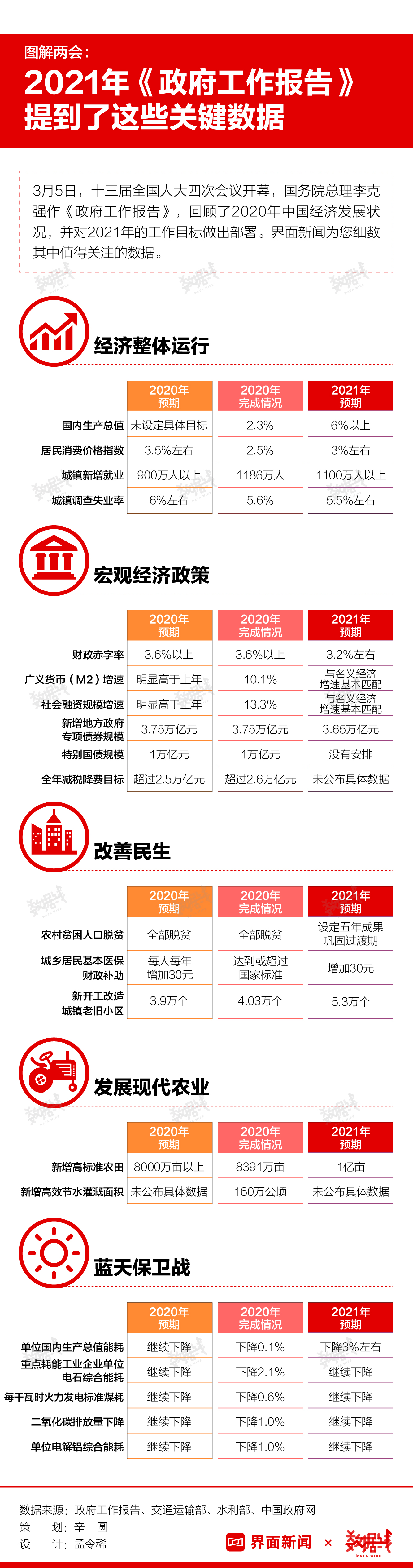 2021年《政府工作报告》提到了这些关键数据 | 图解两会