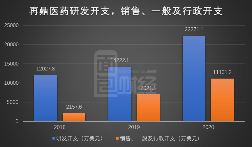 图1:2018年至2020年再鼎医药研发开支,销售、一般及行政开支