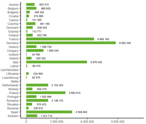 欧洲疾控中心周报显示,截至2月28日,欧盟和欧洲经济区国家共收到4606万剂疫苗。德国、法国、意大利和西班牙接收的疫苗数量最多。