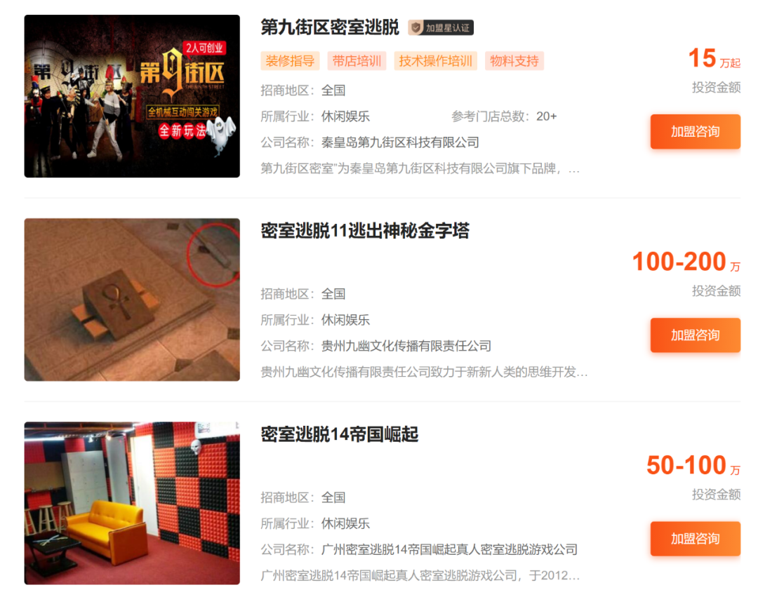 早期,密室逃脱以小商户为主,但随着行业规模的扩大,不少玩家走向品牌化和连锁化,也试图打造出盈利模型,吸引资本的关注。