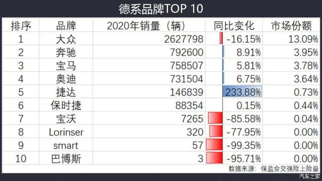 根据宝沃汽车官方数据显示,2020年宝沃累计销售新车8740辆,同比下降84.04%。从汽车之家统计的新车上险量来看,宝沃汽车2020全年新车上险量为7265辆,还比不上此前单月销售的数据。