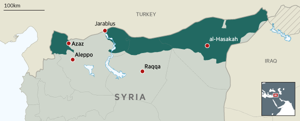 叙利亚北部的库尔德武装一直在美国为首的盟军空袭支持下与“伊斯兰国”(ISIS)作战。自2013年起,从ISIS手中收复了部分地区后,PYD就建立了3个行政区域。这些区域大部分是库尔德人聚集区,也有阿拉伯人聚集区。
