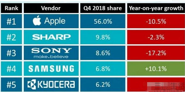 事实上,苹果、夏普、京瓷、索尼、三星作为日本市场前五名这一状况,已经很多年没有发生变化了,其实这已经在一定程度上反应了日本市场的固化。为什么夏普与京瓷这样,已经在日本以外地区失去了市场的品牌,会在本土活得好好的,显然不能单纯地用日本用户更支持本土品牌来回答。