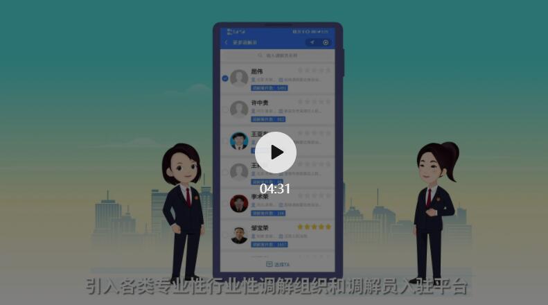 这是人民法院调解平台。有了纠纷,诉讼不一定是最佳路径,在调解平台上,有最丰富的调解资源库,为您提供专业化、高效率、低成本、有保障的纠纷解决方案,实现一网解纠纷。