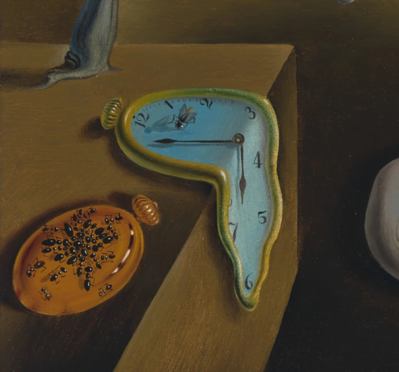 有人曾开玩笑地说,大部分现代主义艺术流派都颇有杀虫剂的气质,因为在立体主义、抽象表现主义、构造主义、达达、波普等艺术中是难以找到有关昆虫的描绘的,但是,这一说法并不完全准确。事实上,苍蝇不但没有绝迹于现代艺术,还有出彩的时候。超现实主义大师萨尔瓦多·达利的《记忆的延续》就是一幅描绘苍蝇的杰作。画中柔软的钟表是无意识世界中时空具有相对性的表征。画面左下角的橘色钟表上爬满了蚂蚁,而相邻的钟表上则有一只苍蝇,奇怪的是,其后面的影子竟像是人的影子!显然,蚂蚁和苍蝇均强烈地意味着腐朽。如果连时间也会如此衰变,那么,还有什么别的东西不会呢?人当然也在改变时间,或有意识,或无意识!苍蝇与人在这里似乎不分彼此了。达利对苍蝇的描绘兴趣还体现在作于一九六八至一九七〇年间的大画《出现幻觉的斗牛士》中,画面上有数不清的苍蝇,有的甚至成了牛的眼睛。在这里,苍蝇是艺术家营造视觉两可性的工具。不难理解,到处都是苍蝇,既是斗牛士幻觉中的景象,也与斗牛场不乏苍蝇有关。无疑,达利是有史以来把苍蝇画得最奇绝的艺术家。