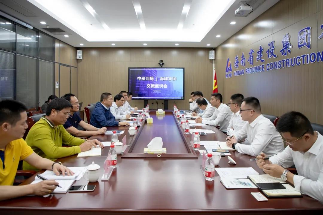 3月5日上午,海建集团党委书记、董事长吴亚春,党委副书记、总经理易伟在集团本部同中国建筑第四工程局有限公司(以下简称:“中建四局”)总经理助理、中建珠江海外发展有限公司董事长陈大麟,中建四局海外部总经理、中建珠江海外发展有限公司执行总经理张嘉一行开展座谈,双方就加强战略合作、推动海南装配式建筑和城市更新发展进行交流。