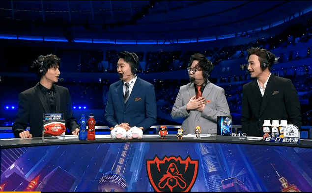 除了赛前送祝福环节邀请明星线上出镜外,有时各大赛事也会邀请明星参与重大比赛的解说,如英雄联盟S10全球总决赛最后一场SN对战DWG的比赛中,罗云熙与张彬彬便登上了赛事解说席。