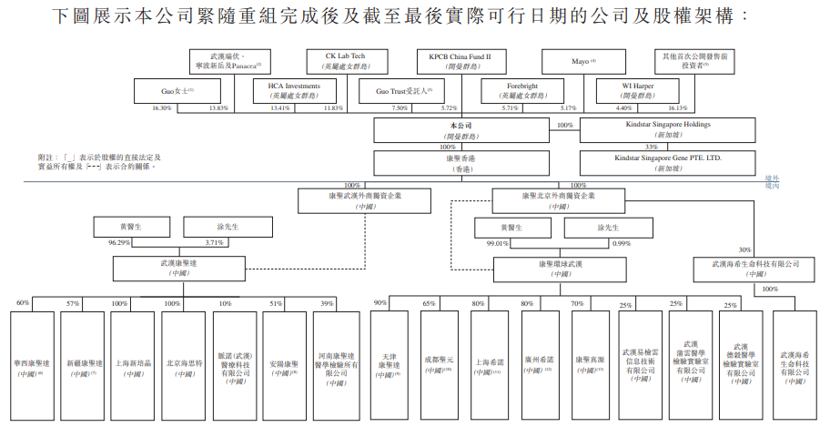 招股说明书披露,康圣环球曾进行多轮融资,参投的机构股东有全球第三方检测龙头梅奥医疗、CPE中信产业基金、KPCB、中银国际、农银国际、Investcorp、鼎珮集团、晨兴创投、瑞伏医疗健康基金、中经合集团等机构。