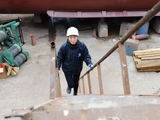 船舶焊接的工作环境要么处于露天悬空,要么处于狭小的舱室内。在高温季节,船体钢板的表面温度超60℃度,站在甲板上被烈日晒得头晕眼花。舱室内的闷热和烟尘呛得透不过气来,汗水湿透了衣服和鞋子,但她总是坚持施工作业,毫不懈怠。冬天寒风凜冽,寒意袭人,而她却要在甲板上、舷侧外迎风顶寒,坚持焊好每一条焊缝。
