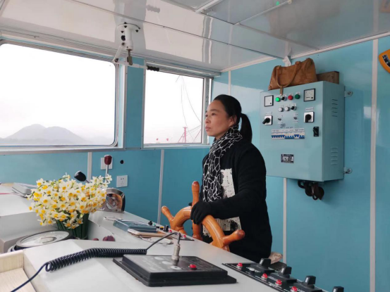吴爱图,是“象农渡98”轮渡船的船长,从17岁登船至今33年,一直坚守在渡轮上。她也是宁波市唯一一个农渡船女船长。