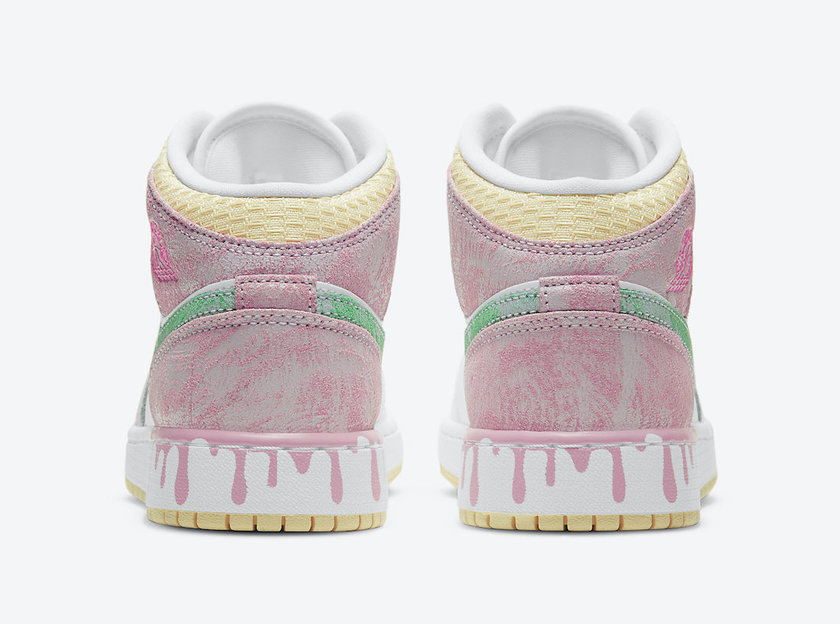 Nike推出Air Jordan 1 Mid SE GS春季版。这款配色采用白色为基底,辅以灰粉色、灰绿色以及黄色细节点缀,气质清新讨喜。