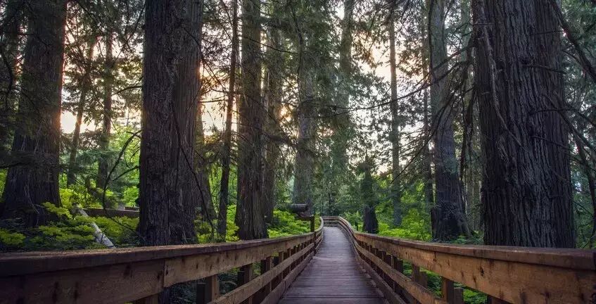 这片温带雨林中的树木都有多年历史,有些杉树已经超过1000年了,树干周长达到16米,还有罕见的地衣和苔藓。为了避免原始森林遭到砍伐或进行工业用途,BC省决定修建一个A级省公园来保护这片雨林。