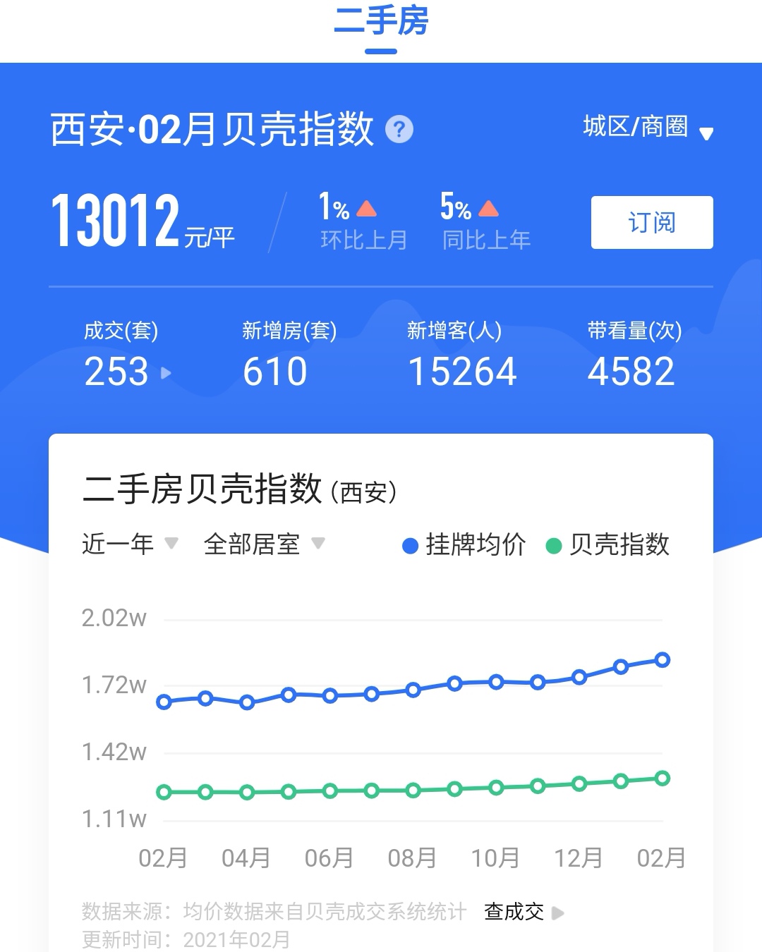 那么,在2月份新房供应量平平的情况下,势必会倒逼一部分急于购房的客户选择二手房。据贝壳APP平台显示,3月8日西安单日的贝壳平台成交套数为253套,数据十分亮眼。西安二手房均价约为1.3万元,但曲江高新的二手房价在2万元上下,甚至同一区域的不同品质楼盘二手房均价都可相差3、4千元乃至更高。