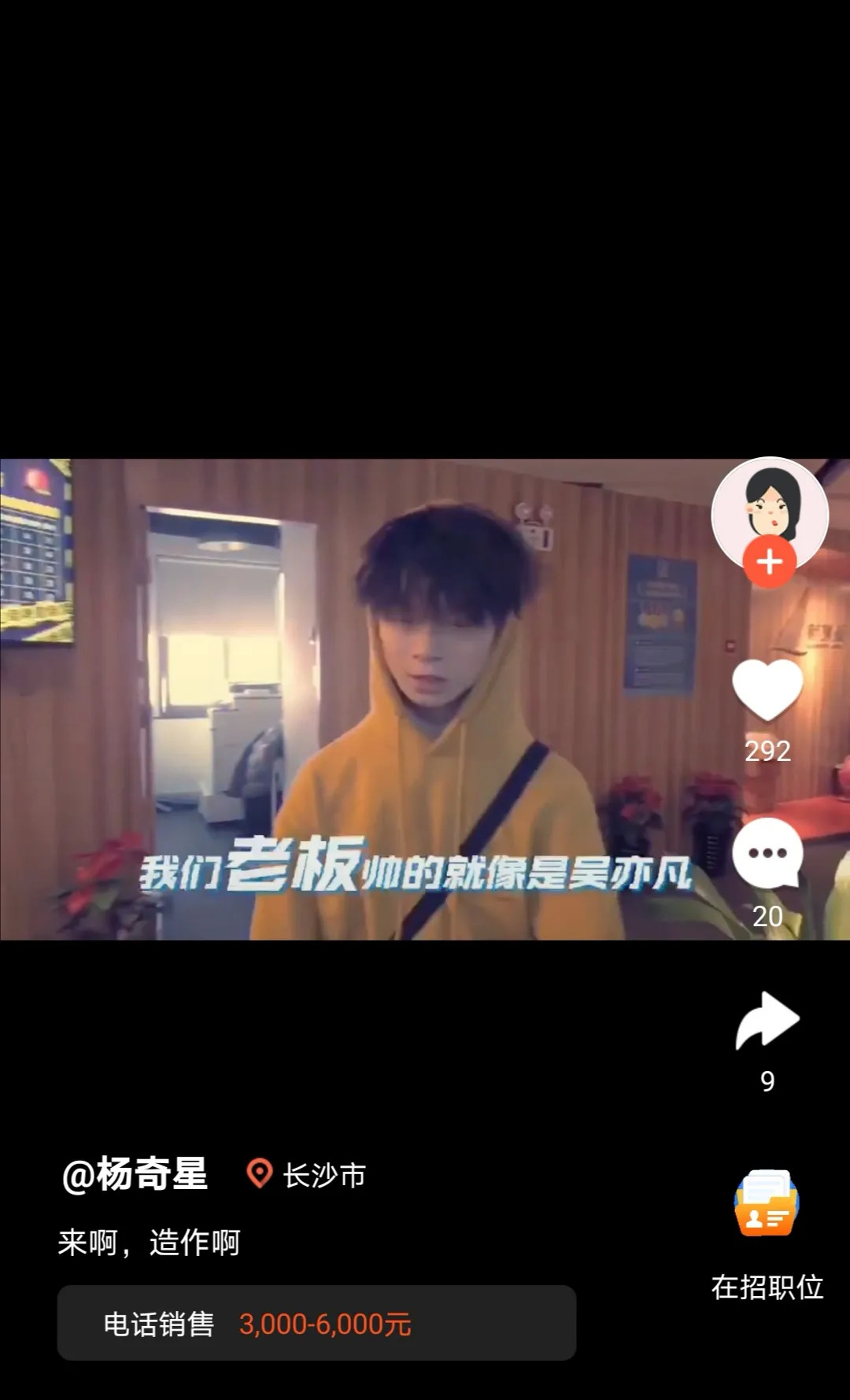 如果想要了解更加具体的岗位职责,那就点击视频右下角的“在招职位”,会有文字介绍岗位的亮点、福利等内容,诸如“高提成”“免费住宿”“节假日有XXXX元过节费”等,详情还可以通过“打电话”“聊工作”等按钮来咨询职位发布者,甚至预约“视频面试”。