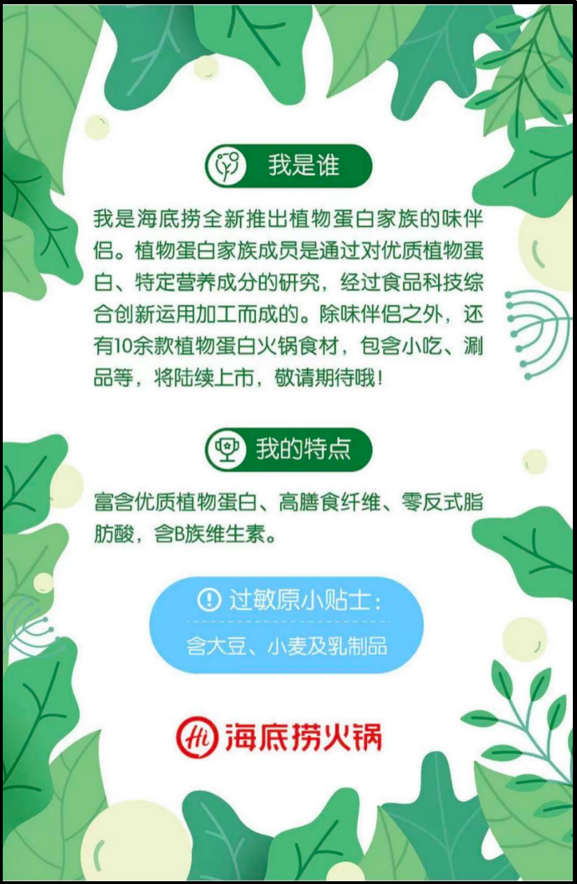 海底捞公关部门告诉全天候科技称,植物蛋白产品,符合人类追求环保、绿色营养的可持续发展理念,可补充满足消费者对多种营养成分的需求,促进健康饮食。