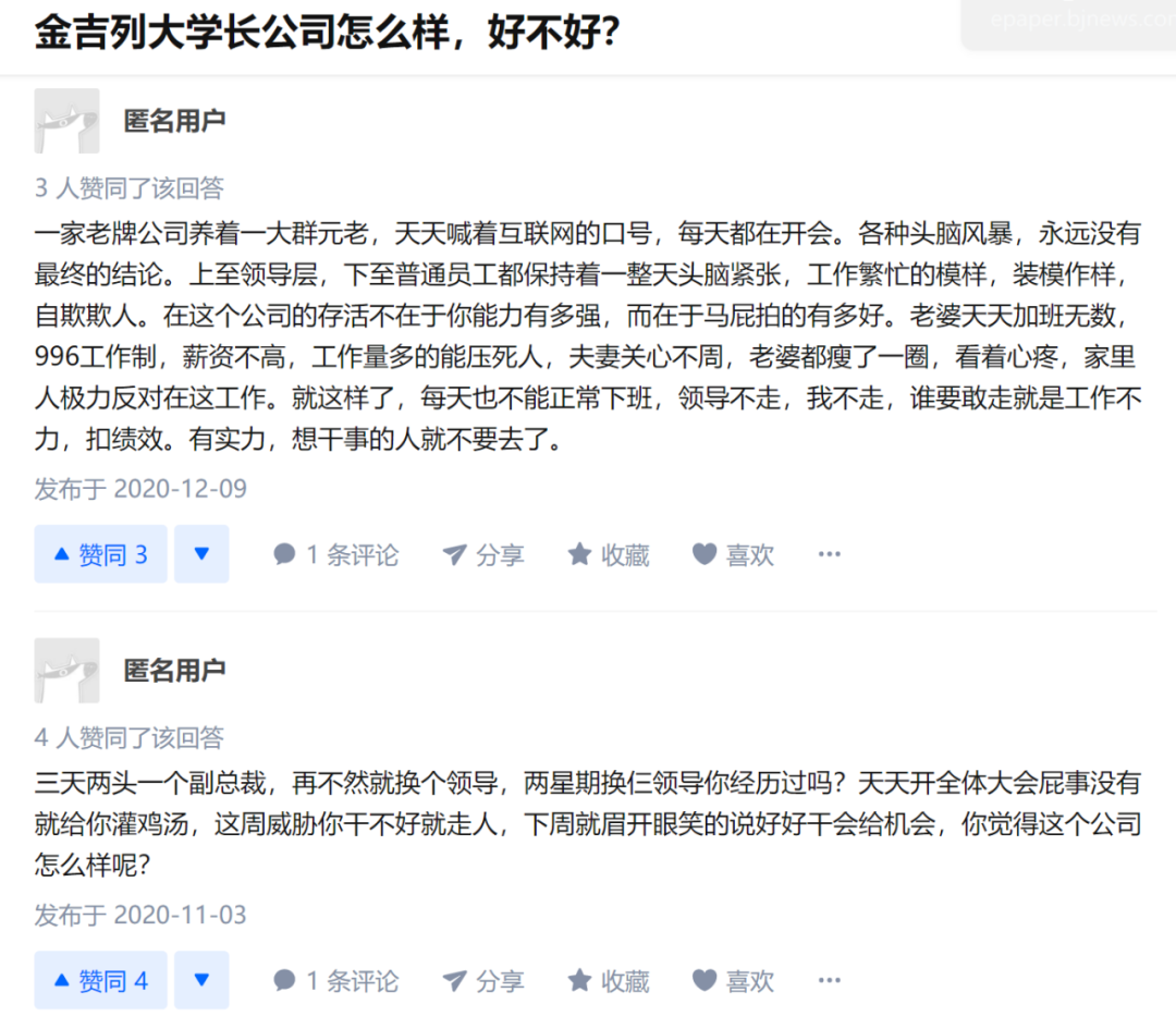 在社交平台知乎上,不少员工吐槽“人员流动速度快,团队不稳定”、“层级关系复杂”、“加班严重”、“福利待遇差,薪资较低”等问题。