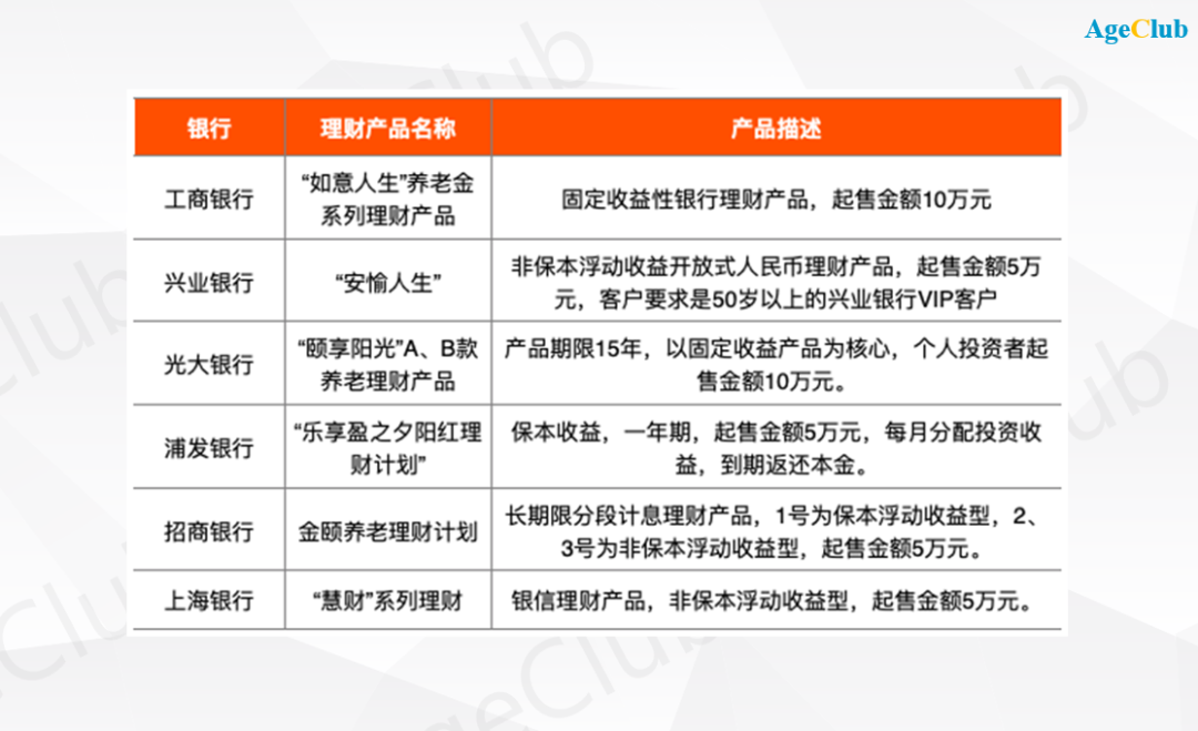 AgeClub对比普通的银行理财产品发现,近两年银行养老型理财产品具有一些明显特征: