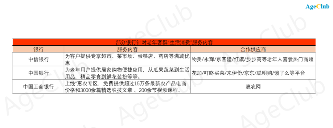 其二,“生活消费服务”成为“老年客户差异化权益增值服务”的落点之一。