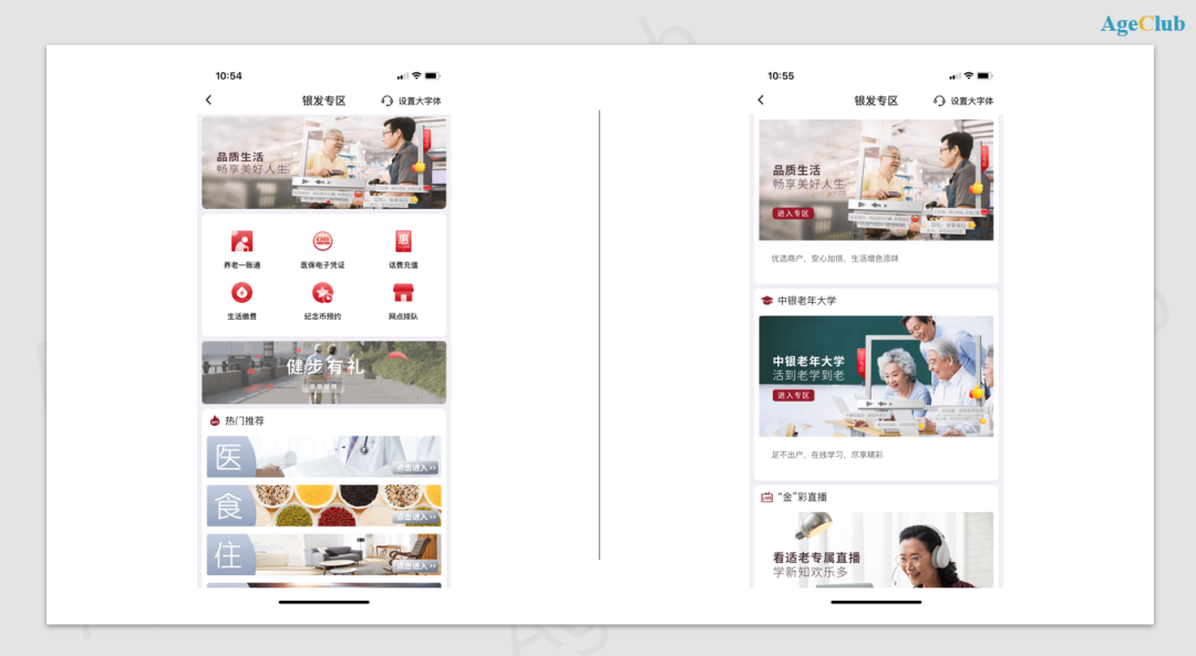 此前,AgeClub文章已详细解读过“银行app适老化改造”,(参考《从互联网巨头到银行机构全面适老化改造,中国适老化改造需求/痛点/趋势解读》以及《移动互联网迎来适老化时代:银行一马当先,淘宝、滴滴、高德迅速跟进》)这里重点解读银行线下服务的优化。