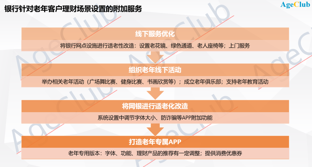 同时,在“养老金融产品”之外,鉴于“新老年”品质养老需求升级,银行还需提供更多养老增值服务。