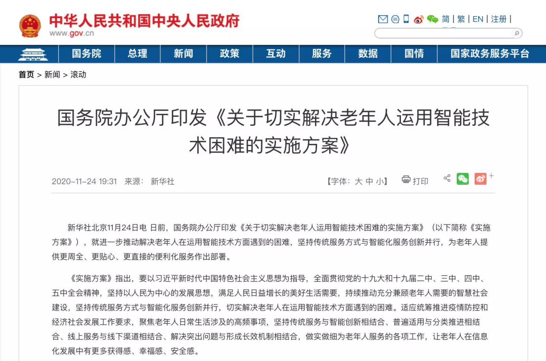 2020年11月国务院办公厅印发《关于切实解决老年人运用智能技术困难实施方案》,提出银行在加快数字化转型的过程中要坚持传统服务方式与智能化服务创新并行。