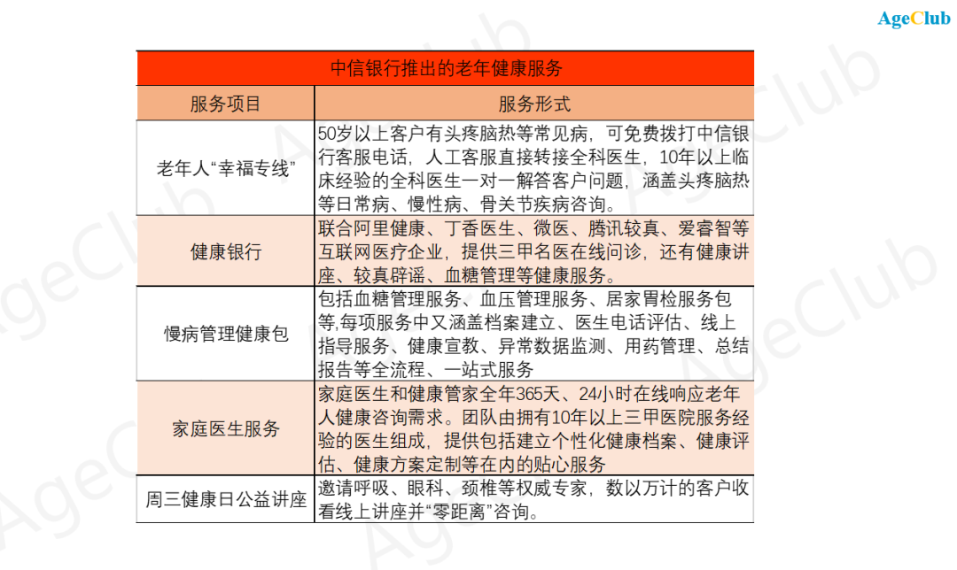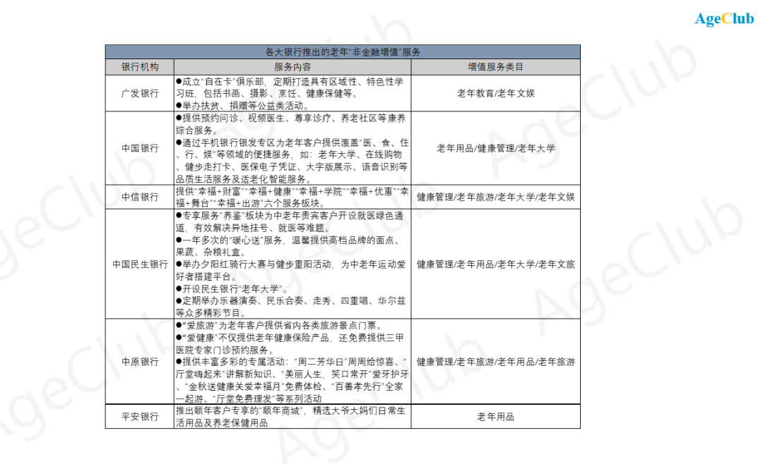 而据AgeClub观察,银行在对老年客群的“增值服务”中,也主要围绕上述三个方面布局。