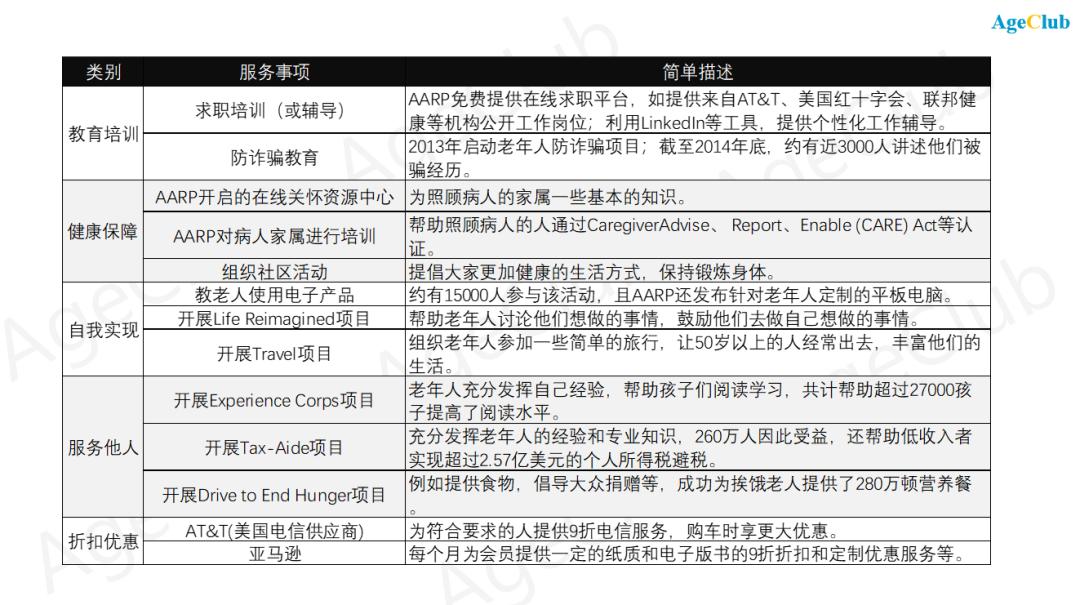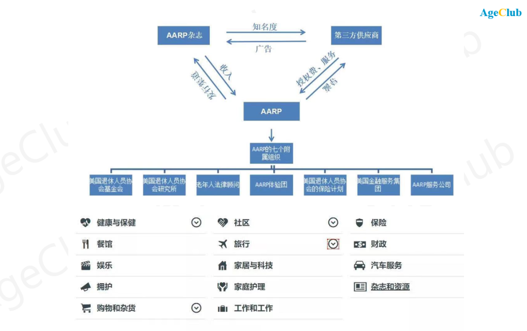 围绕这一逻辑,可以参考借鉴美国AARR模式(美国退休人员协会)。