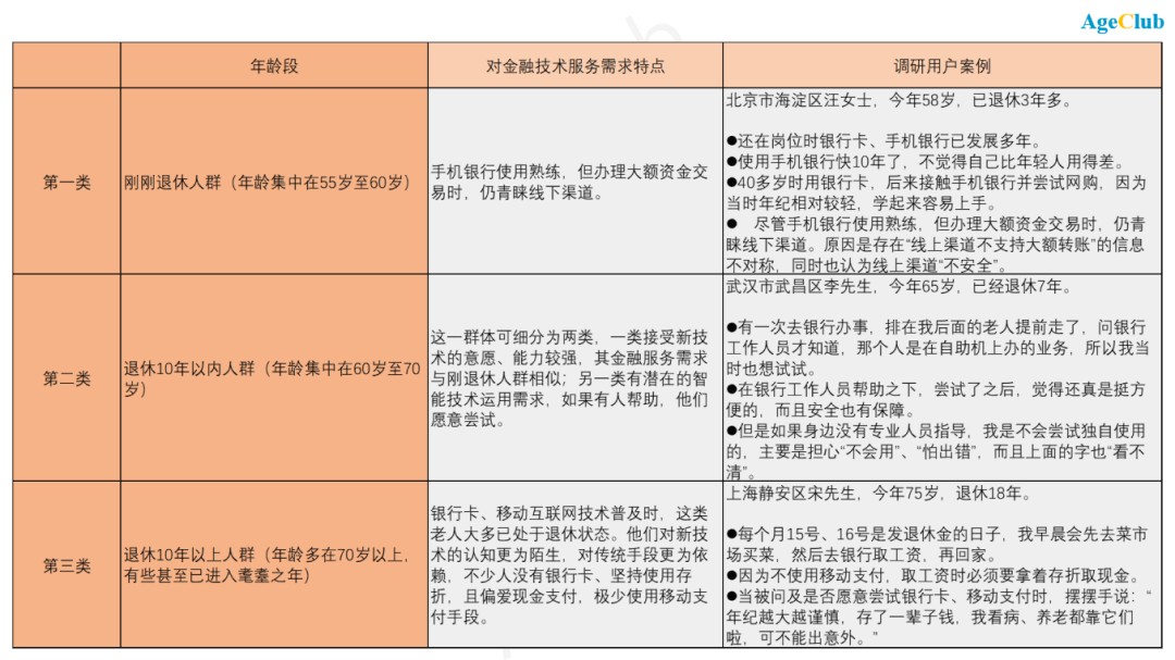 4、在金融技术服务上,老年群体年龄划分造就多层级市场需求,需求也存在较大差异。