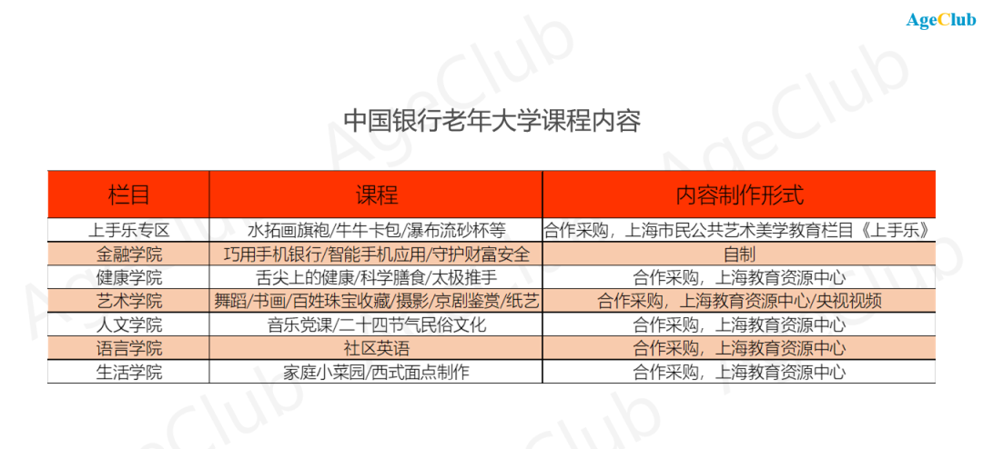 二是提供老年大学专属服务,比如广发银行、中国银行、中信银行等。以中国银行老年大学为例,目前已开设上手乐、健康、艺术、语言、金融、人文、家庭生活七大学院,不仅为银发客户提供了热门老年大学课程,还设有中行特色金融课程。