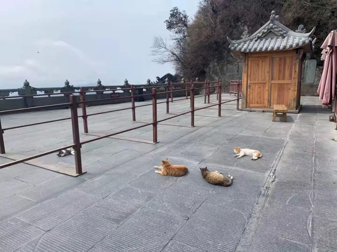 图 | 武当山疫情解封前一天,流浪猫们在晒太阳