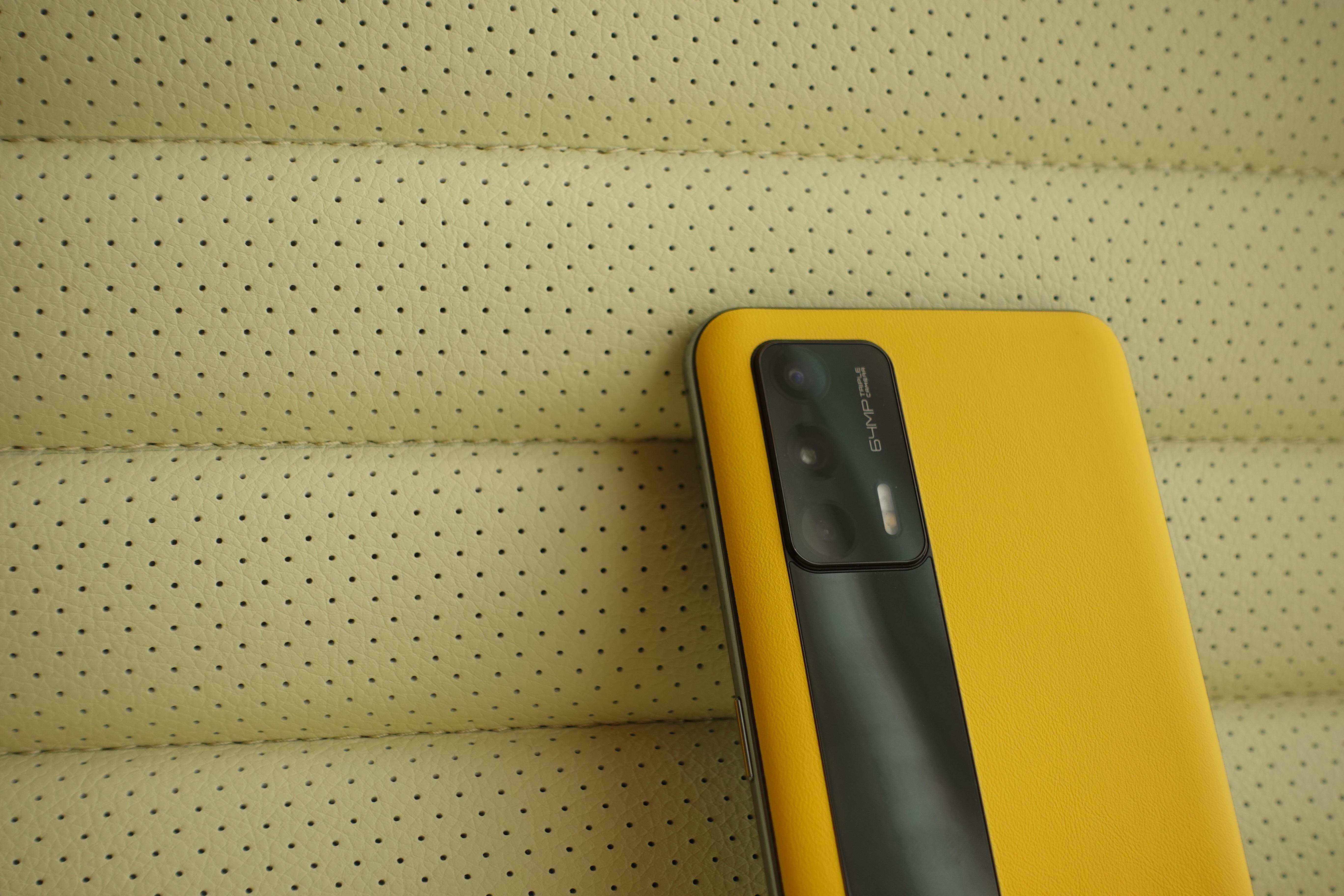作为旗舰系列,realme GT在外观上采用全新的设计,借鉴跑车设计灵感,整机厚度8.4mm,重量则为184g,名为曙光的素皮版手感更加细腻一些。