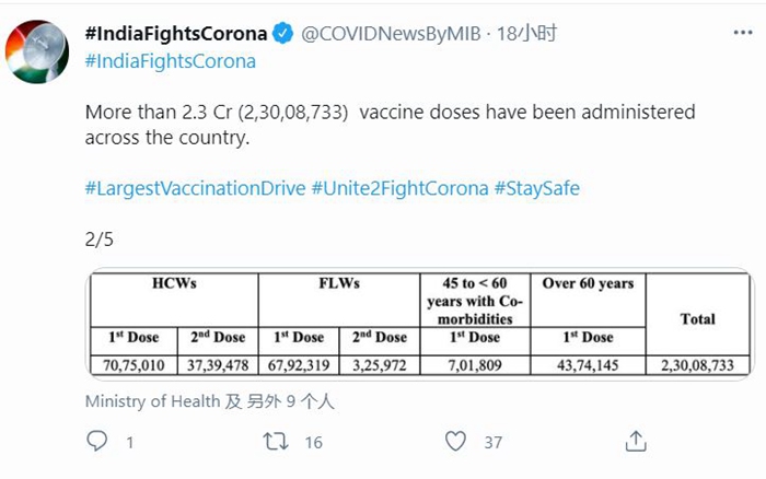 印度药企巴拉特生物技术公司和印度国家病毒学研究所联合研发了疫苗,印度政府计划将该疫苗出口到巴西、菲律宾、津巴布韦等近40个国家。
