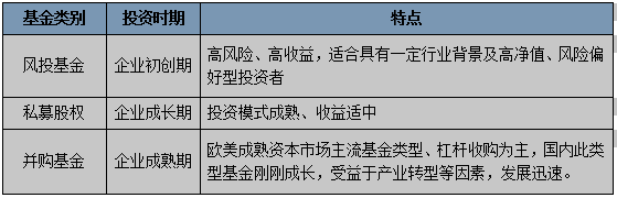 由上图可以看出,在并购基金成立以后,其管理机构会开始寻找目标企业或项目,然后进行杠杆收购并对收购对象进行管理,待企业经营改善之后择机退出,以达到资金使用效率最大化。在收购标的企业的选择上并购基金与VC/PE基金不同,VC/PE基金的投资一般发生在企业初创期或成长期,而并购基金选择的对象是成熟企业,目标在于获得企业的控制权和管理权。具体区别见下表。