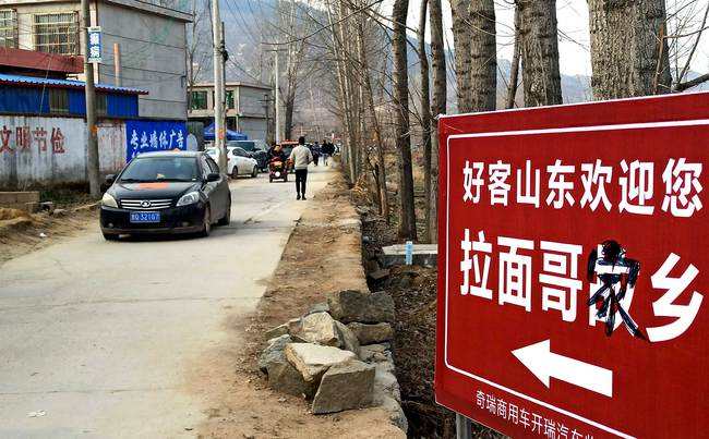 连村口都立上了某汽车品牌赞助的“拉面哥故乡”的牌子。