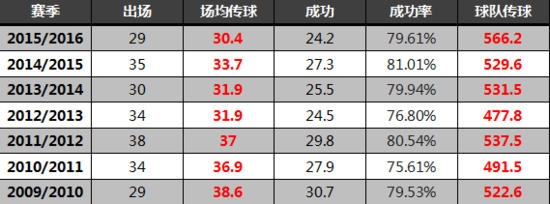 尽管在很多场西甲的比赛中,C罗并不是作为中锋出场的,但不管是出现在球队的边路还是中路,他都不是一个习惯组织传球的进攻手,本赛季场均传球次数30次左右,已经是C罗皇马生涯的新低了。