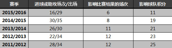 在进5个赛季的西甲比赛中,本赛季C罗的进球或助攻对于皇马比赛结果的影响是最小的。