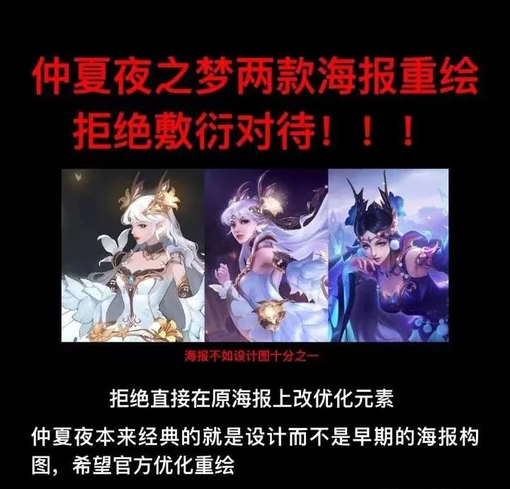 首先,每一个玩家都是皮肤质量的把关者。除锚点皮肤外,如貂蝉仲夏夜之梦优化版过于整容脸、公孙离祈雪灵祝皮肤身姿扭曲、李白典藏皮肤气质阴险、露娜皮肤音效二技能与大招重复等问题,都在《王者荣耀》官博下被玩家长期反馈,强烈要求修改。