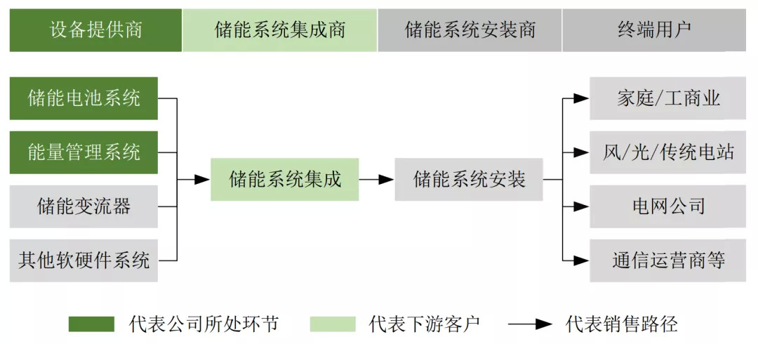 由于储能系统集成涉及的电气设备较多、专业性较强,因此一般由系统集成商对整个储能系统的设备进行选型,匹配集成给下游的安装商,才最终安装交付给终端用户。