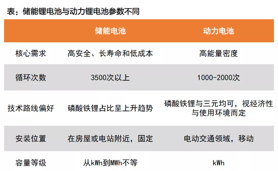 动力电池的核心需求是高能量密度,而储能电池则是追求安全可靠性、长循环寿命和低成本。