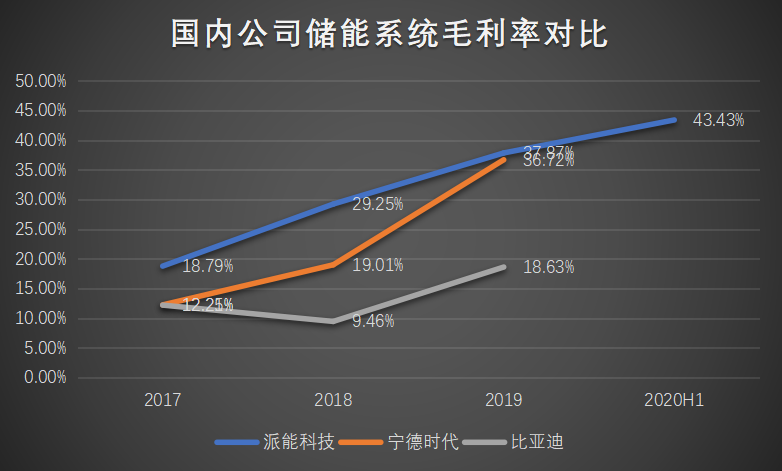 再横向对比看看,在储能系统业务上,派能凭借聚焦家用储能,相较于工商业储能系统的销售更容易产生品牌溢价,因而毛利率强于宁德时代与比亚迪。